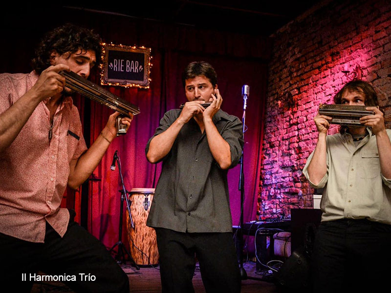 His enthusiasm and curiosity led him to develop skills in different types of harmonica, such as diatonic, chromatic, chord, and bass harmonica. In an effort to bring the old school harmonica bands back, extinct in Argentina, he founded ‘IL harmonica trio’ in 2011. The trio is still active today with his band mates Lucas Chamorro and Andrés Chorny. The trio, playing both original pieces and covers, focuses mainly on tango and jazz repertoire. Their music has travelled around Argentina and abroad. To formalize his musical knowledge in 2012, he began his formal studies as instrumental musician specialized in harmonica-tango at the Avellaneda School of Popular Music (EMPA).